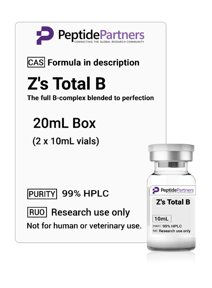 Peptide Partners’ B-complex proprietary blend. Formulated for researchers looking to analyze large combinations of vitamins and aminos.